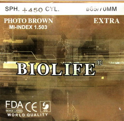 ЛИНЗА МИНЕРАЛЬНАЯ BIOLIFE ФОТОХРОМ(КОР) 1.503 70ММ